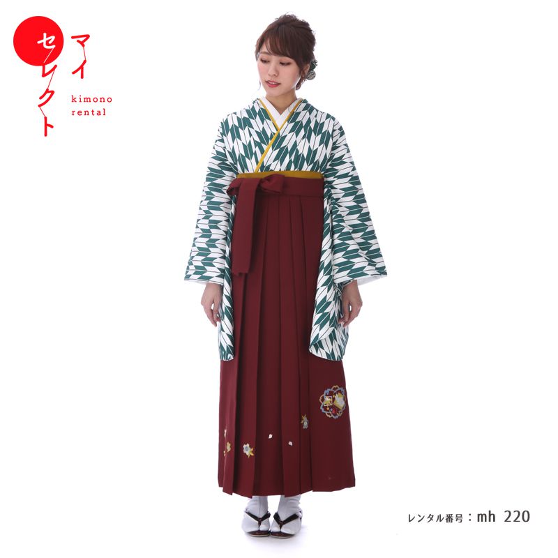 袴 レンタル 卒業式 大学 セット 白 緑 赤 フルセット mh_220 往復送料無料 二尺袖 大学生 短大 先生 ブーツ丈対応 和装 礼装用 ハカマ はかま 草履バッグセット レトロ 衣装レンタル 草履 袴レンタル 着物レンタル 【レンタル】