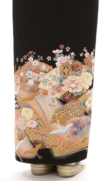黒留袖 レンタル mito_299 N-287 吉慶扇面に飛翔鶴 S 正絹 | 往復送料無料 留袖 母親 マイセレクト 留袖レンタル レンタル着物 草履バッグセット 黒留袖レンタル 小さいサイズ 結婚式 黒留 服装 おすすめ レンタル留袖 着物 着物レンタル お宮参り【レンタル】